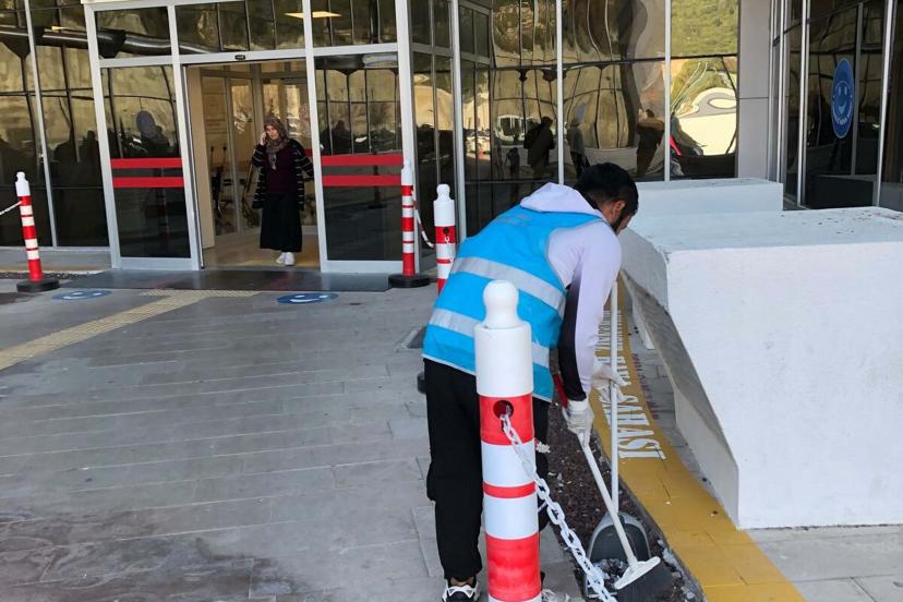 MUĞLA’nın Bodrum ilçesinde denetimli serbestlik yükümlüleri, Bodrum Devlet Hastanesi’nde çevre temizliği yaptı.