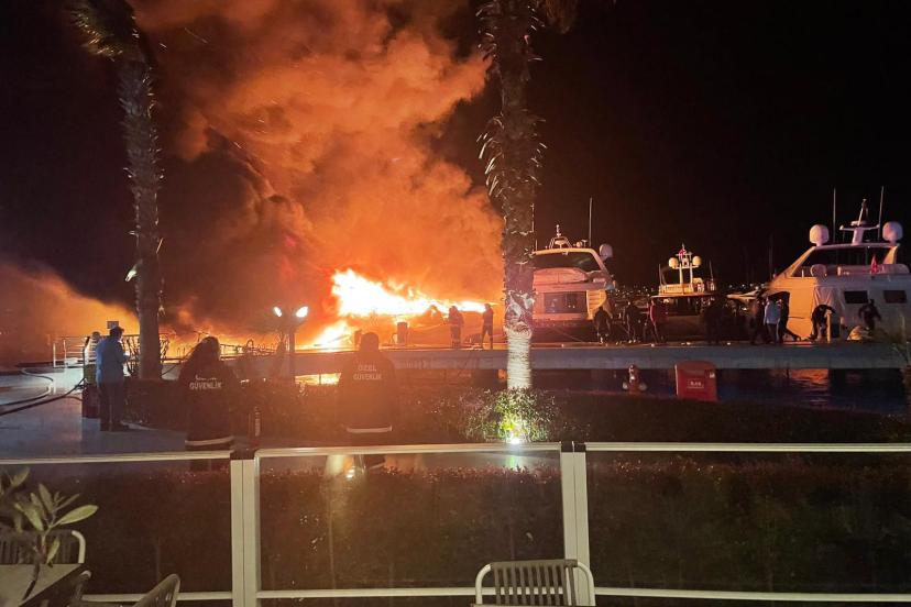 Yalıkavak Mahallesi'nde bir marinada bağlı bulunan motoryatta saat 04.00 sıralarında yangın çıktı. Alevler kısa sürede büyüyerek diğer motoryatlara da sıçradı. İhbarla bölgeye itfaiye ekipleri sevk edildi. Bodrum Bölge Liman Başkanlığı’nın talimatıyla Bodrum’dan 1, Güllük’ten ise 2 liman römorkörü ve kıyı emniyetine bağlı römorkörler de bölgeye sevk edildi. Ekipler, karadan ve denizden alevlere müdahale etti. Bodrum Sahil Güvenlik Karakol Komutanlığı ekipleri de denizde önlem aldı. Yangında yanan boyları 20 ila 30 metre arasında değişen 7 motoryat battı, 1’i ise kısmi hasar aldı.