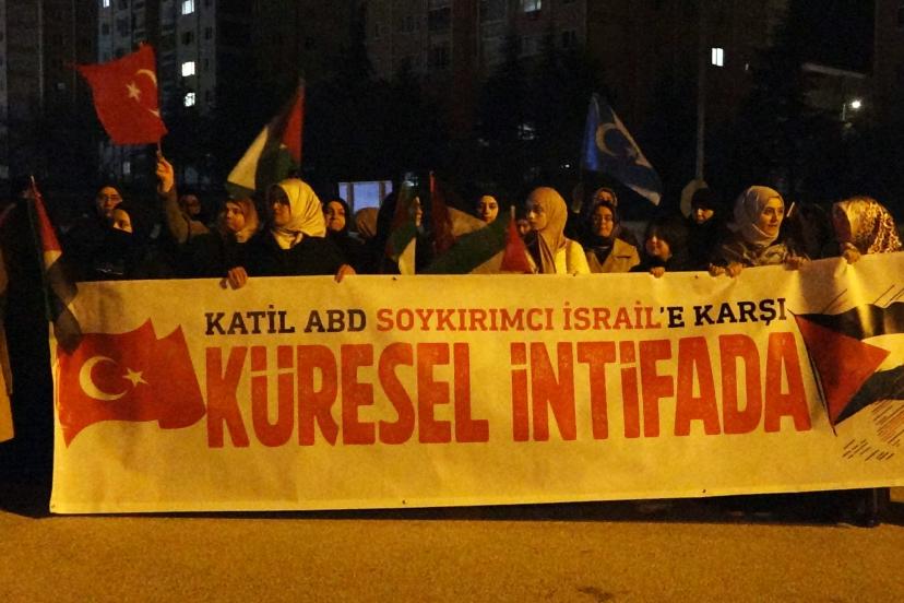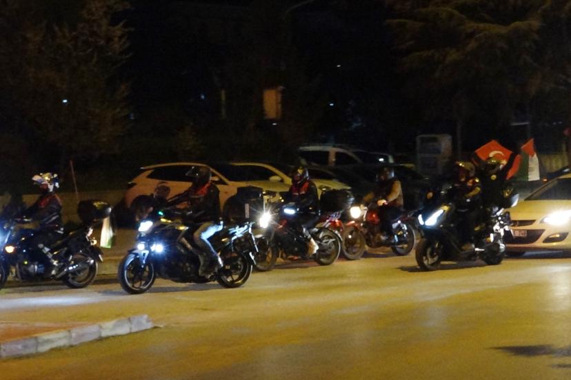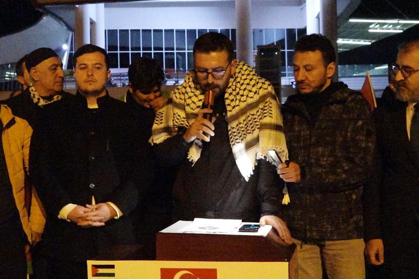 Atatürk Mahallesi'nde bir araya gelen gönüllülerin yatsı namazını Burkent Camisi'nde kıldıktan sonra oluşturdukları konvoy Emek Mahallesi, Bülent Ecevit Bulvarı, Gazi Caddesi, Armağan İlci Bulvarı ve İnönü Caddesi'ni takiben otogarda sona erdi. Burada açıklama yapan Filistin Destek Platformu Sözcüsü Hüseyin Büyükkeleş, "Gözü dönmüş, azgın bir grup Siyonist tarafından planlanmış ve ne yazık ki uygulamaya konulmuş, akıl almaz bir dönemi yaşamaktayız. Tüm değerlerin yok sayıldığı, çiğnendiği bir zaman diliminden geçmekteyiz. İnsanlık adeta azgın ve sapkın bir ideoloji tarafından ne yazık ki rehin alınmıştır. Biz esir değiliz. Bu esaret girişimine karşı kayıtsız kalacakta değiliz. Siyonist rejim şunu bilsin ki zalimlerin topuna canımızla başımızla, elimizle, aşımızla, varımızla, yoğumuzla direneceğiz. Bugün burada sadece bir kınama mesajı yayınlamak için değil insanlığın ortak mirasına, inanç özgürlüğüne ve uluslararası hukukun temel taşlarına vurulan baltayı deşifre etmek için toplandık. İslam dünyasının kalbi kanıyor, ilk kıblemize zincirler vuruluyor ve modern dünya, tarihin en büyük 'inanç ve yaşam hakkı' ihlaline, küresel bir şantaj sarmalının gölgesinde seyirci kalıyor. Siyonist İsrail rejimi tarafından, Gazze'de işlenen soykırımın kahredici acısı vicdanlarda canlı dururken, Lübnan'da ve İran'da ortaya konan yeni vahşetler insanlığı bir kez daha derinden sarsmaktadır. 165 İranlı öğrencinin, Siyonist rejim tarafından okul sıralarında katledilmesi ve bu katliamın küresel vicdanda yeteri kadar yer bulmaması bizleri derinden sarssa da bugün burada olduğu gibi dünyanın dört bir yanından yükselen itiraz sesleri bir nebze olsun umudumuzu yeşertmektedir" diye konuştu.