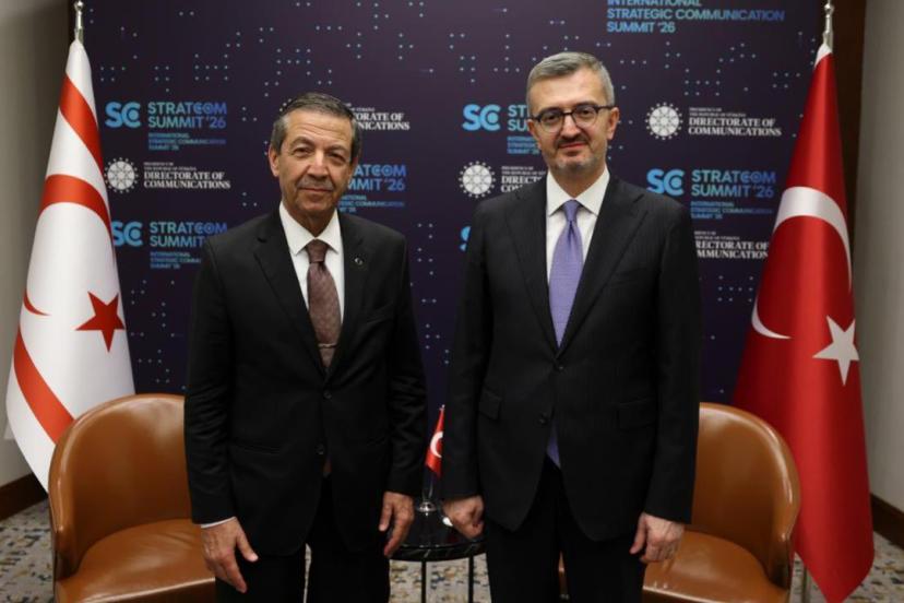 İletişim Başkanı Burhanettin Duran, Uluslararası Stratejik İletişim Zirvesi (STRATCOM Zirvesi) 2026 kapsamında Kuzey Kıbrıs Türk Cumhuriyeti (KKTC) Dışişleri Bakanı Tahsin Ertuğruloğlu ile bir araya geldi.
