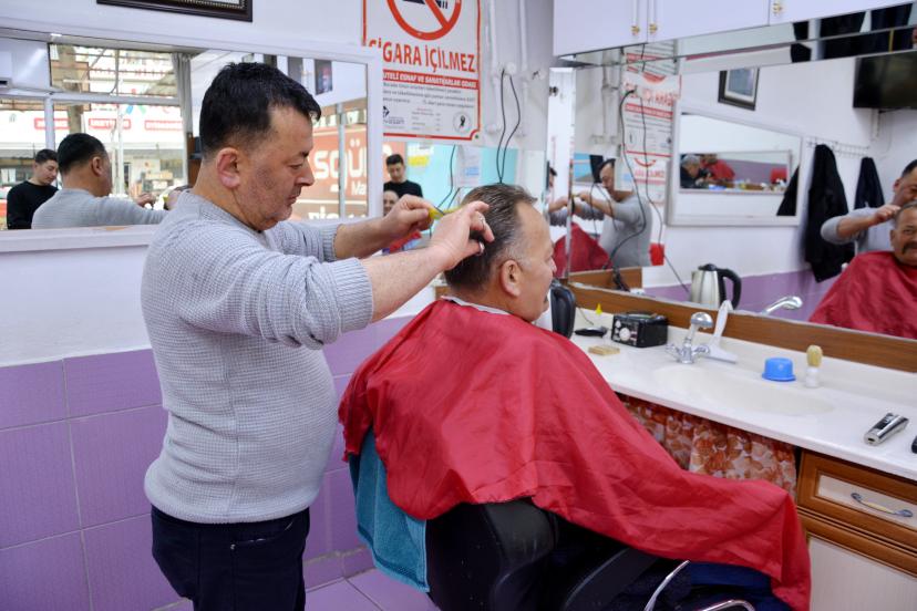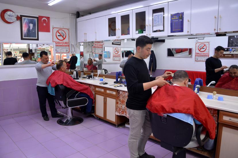 İlçede kuaför ve berberlerde bayram öncesi yoğunluk arttı. Tıraş olmak isteyenler erken saatlerde berber koltuğuna oturdu. Bazı işletmeler randevuyla müşterilerini kabul etti. Son günlerde berberlerde geç saatlere kadar mesai sürdü. Berber Rafet Demir, "Ciddi yoğunluk oldu. Randevu ile çalışıyoruz. Geç saatlere kadar çalışıyoruz. Müşterilerimize hizmet vermek istiyoruz" dedi.