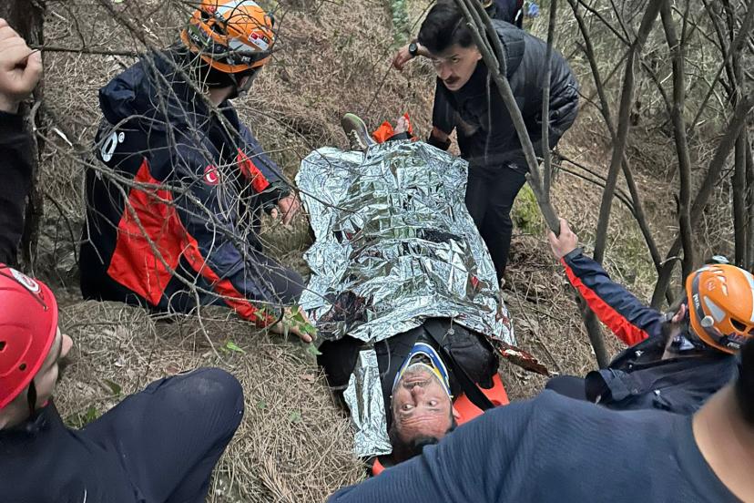Uçurumdan düşen kazazedeyi ekipler kurtardı